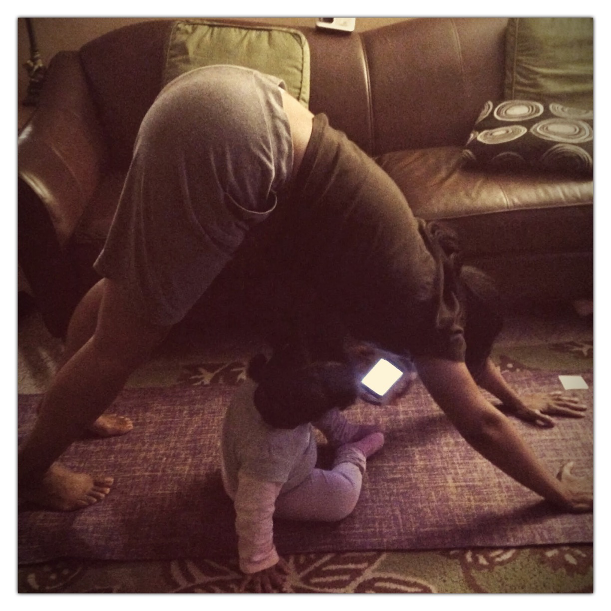Whenever I crawled into downward dog, I felt stiff and awkward. I could say that Lil Ma camping underneath me didn’t help, but it’s not her fault. This was my standard pose.